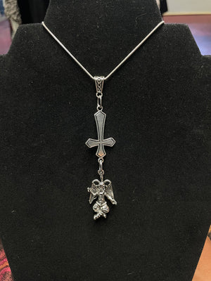 Silver Inverted Cross & Baphomet Necklace