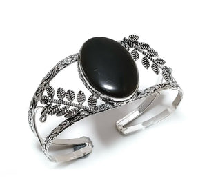Silver Ornate Bangle w/ Large Gemstone