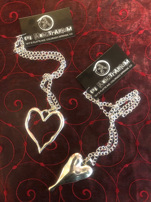 Silver Warped Heart Pendant w/ Chain Necklace