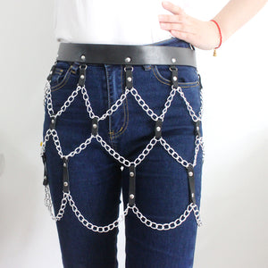 Vegan Leather & Draping Chains Pentagram Chest Harness