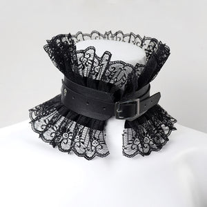 Vegan Leather 2 Chains 2 Spikes O-Ring Collar