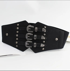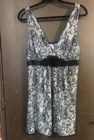 Black & White Lace Flower Design Dress w/ Faux Waist Belt