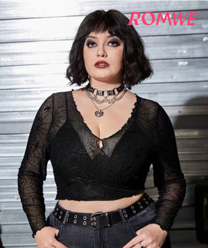 Black Mesh & Velvet Romantic Spiderwebs Longsleeve Shirt