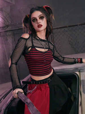 Black Mesh & Velvet Bats Longsleeve Crop Top