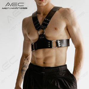 Black Vegan Leather Bondage Chest Harness w/ Leash