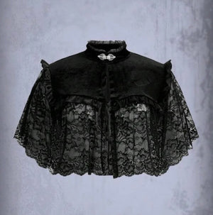 Black Velvet & Lace Capelet w/ Silver Clasp