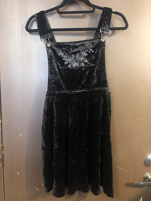 Black Velvet Jumper Dress w/ Grey Flower Design