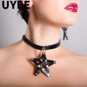 Black Vegan Leather Star Collar w/ Rivets